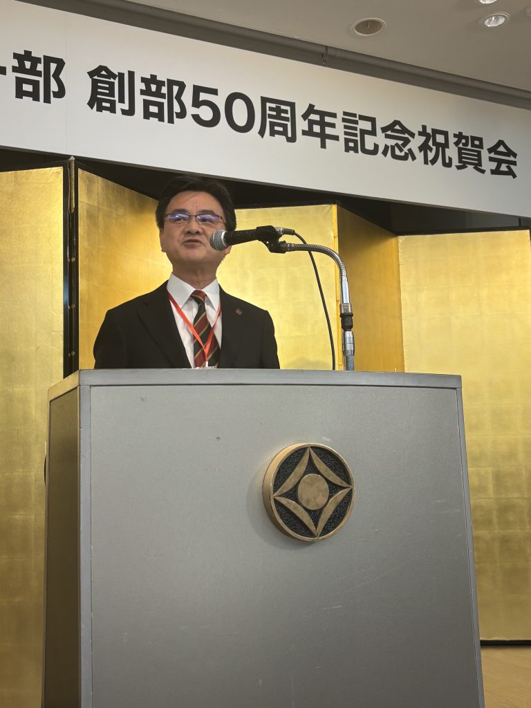 8月31日にはホテルニューオータニにて、獨協医科大学ラグビー部の50周年記念祝賀会が盛大に開催されました。半世紀という大きな節目を迎えOB他関係者が一同に会した様子は、まさに歴史と絆を感じる会でした。前ラグビー部OB会長田伝重先生のご挨拶、また日本大学スポーツ科学部教授の益子俊志様の公園、会場の皆様の暖かいメッセージなど全てにラガーマンとしての心意気と熱意が感じられました。長田先生からの案内状には「私たちのラグビー部は、創部当初から今日まで学生時代には言うに及ばずOBになった後も一部の時も五部の時にも「和」を持って親しく接するという事を伝統とし継続してくることができました。」とありました。今回の祝賀会に参加させて頂き、まさに「和」という言葉を実感する事ができました。ラグビー部のこれからのさらなる発展を祈っています!ありがとうございました。